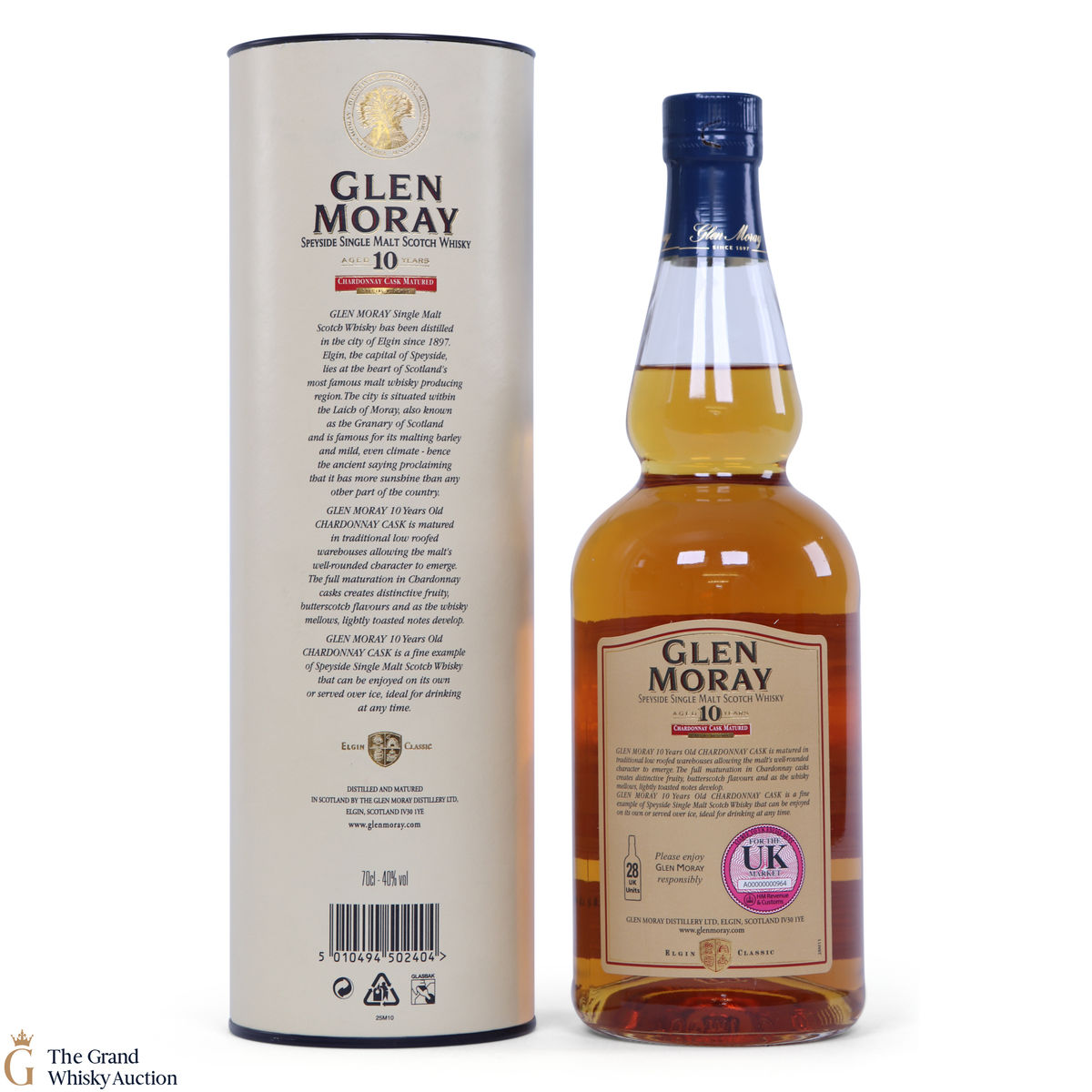 This Glen Moray single malt from Speyside has been matured in chardonnay casks. This is an older bottling of Glen Moray that has long been discontinued. It has a light gold colour and is gently spiced with fruity butterscotch notes.