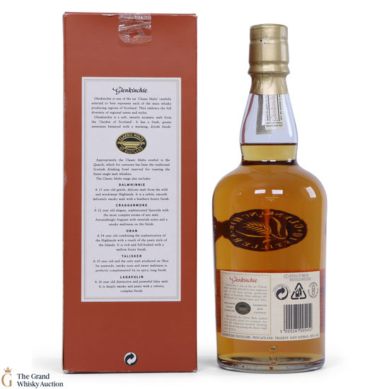 This 10 year old is an older style bottling from Glenkinchie Distillery, that comes presented in the famous orange box - with the classic malt stamp on the front of the box. The Glenkinchie 10 year old has since been replaced by the 12 year old.