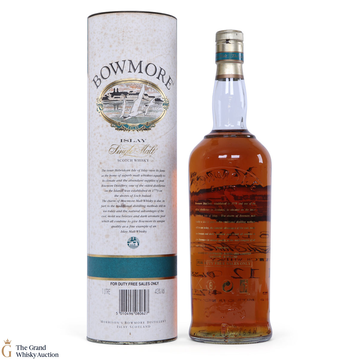 This is a 1L bottling of 12-Year-Old Bowmore. This single malt has coastal notes with gentle peat.