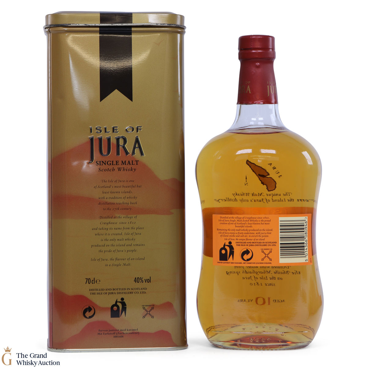 A bottle of Jura 10 Year Old. Originally built in 1810, the distillery fell into disrepair and wasn't revived until the 1960's by two local estate owners.