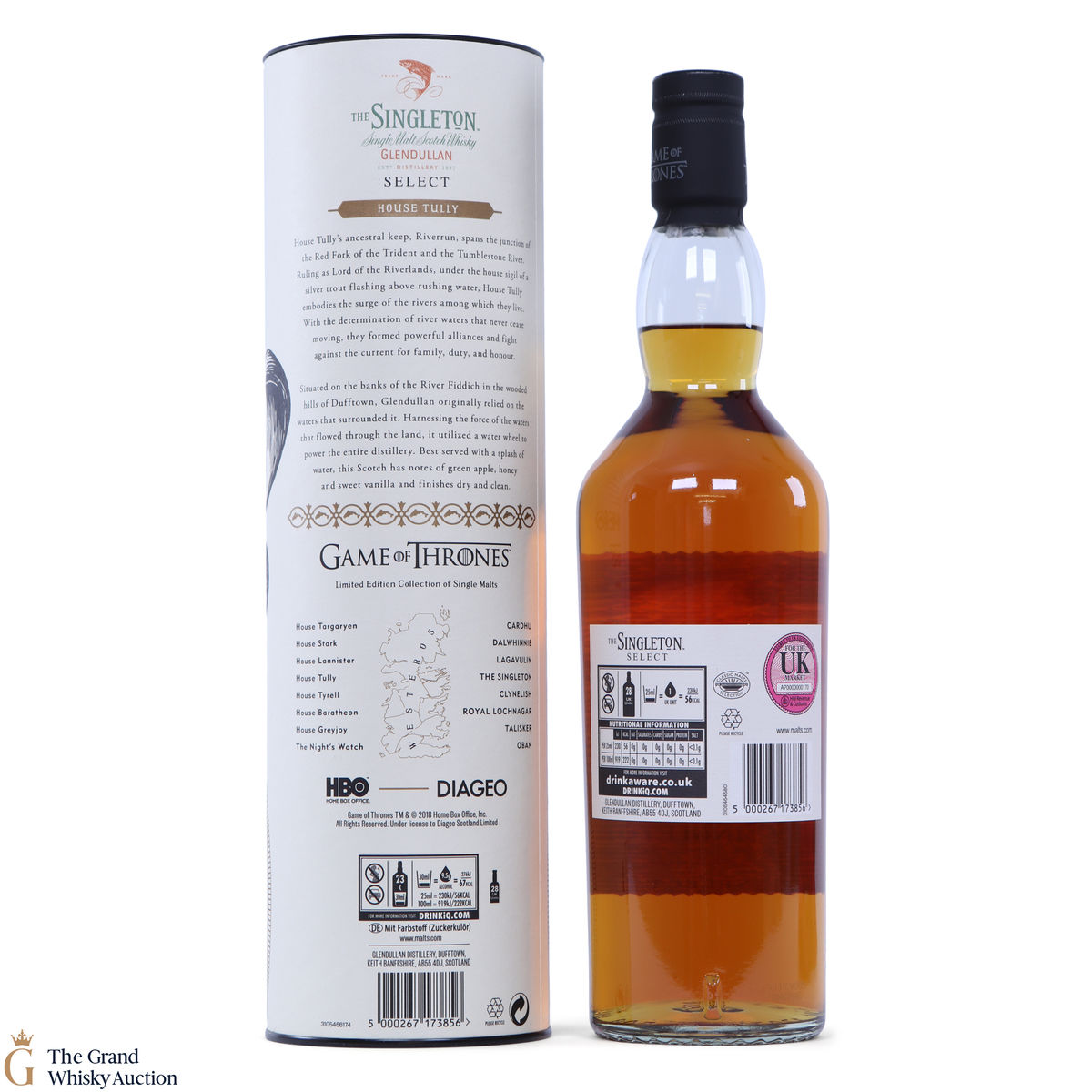 The Singleton Glendullan Reserve hails from Dufftown distillery. Glendullan is located on the banks of the River Fiddich, so it has been cleverly paired with House Tully at Riverrun, which is in the region known as The Riverlands. This single malt Scotch whisky is decorated with a jumping trout - the sigil of House Tully.