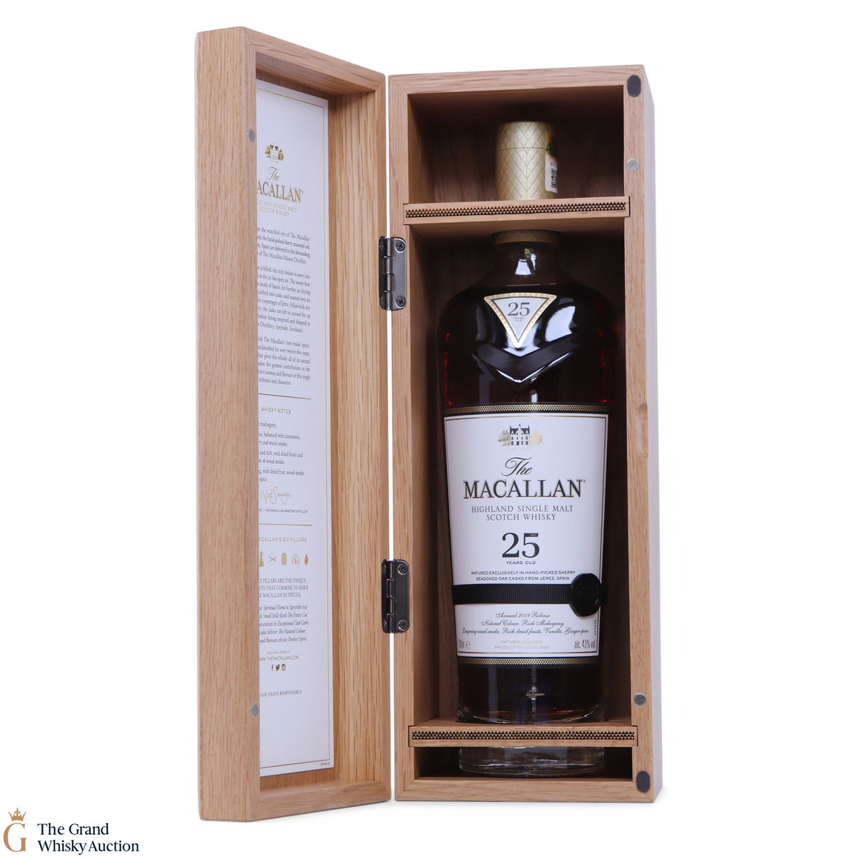 This is the 2019 edition of Macallan's 25 Year Old Sherry Oak. It comes with a stunning wooden presentation box. It's matured exclusively in hand-picked sherry oak casks from Jerez for a quarter of a century.