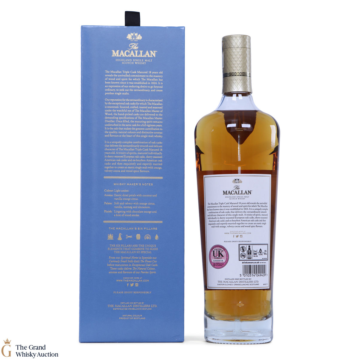 This 18 year old Macallan single malt was released in 2018 and sits is at the top of the Triple Cask range (which replaced the Fine Oak range). The whisky was matured in a combination of European sherry seasoned casks, American sherry seasoned casks and American ex-bourbon casks. This expression boasts bountiful notes of vanilla, dried fruit and woody spice.