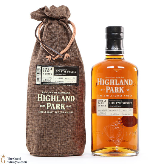 This bottling is part of Highland Park's Single Cask Series and was bottled exclusively for Loch Fyne Whiskies. Distilled in 2002, this single malt was matured for 15 years in refill butt #3374 at the cask strength of 58.4% ABV. With only 584 bottles available, this is a limited edition.