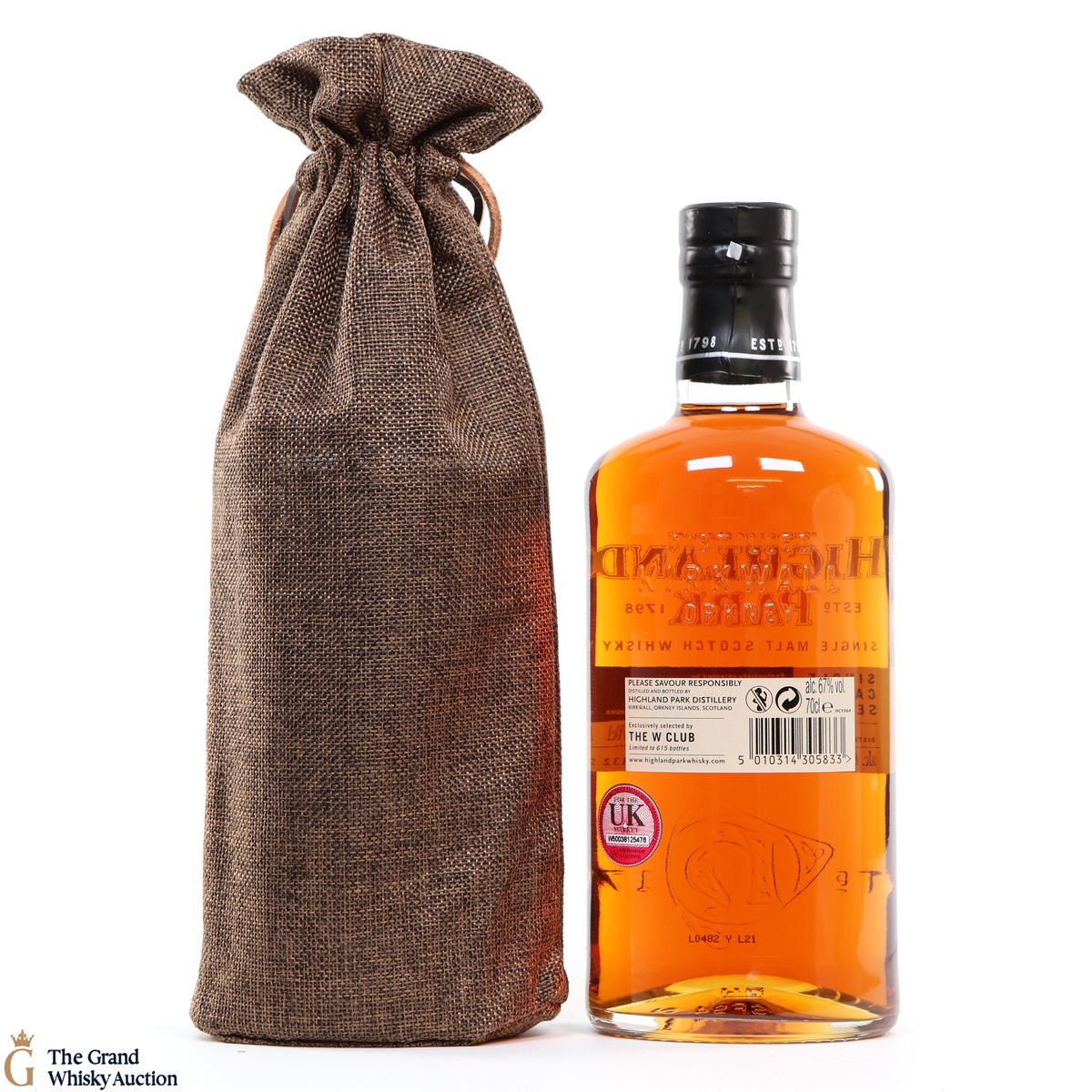 This bottling is part of Highland Park's Single Cask Series and was bottled exclusively for The W Club. Distilled in 2006, this single malt was matured for 11 years in first fill American Sherry Oak Puncheon #2132 and was bottled at the cask strength of 67% ABV. With only 615 bottles available, this is an extremely limited edition.