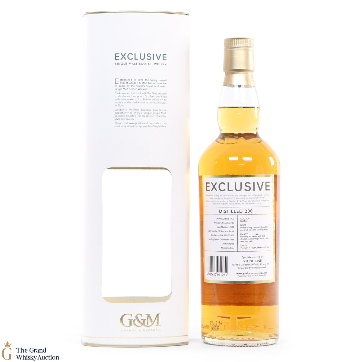 This Highland Park single cask release was bottled exclusively for Viking Line by Gordon & MacPhail. Distilled in 2001, this single malt was matured in cask #3000 and bottled in 2016 at the cask strength of 56.4% ABV.