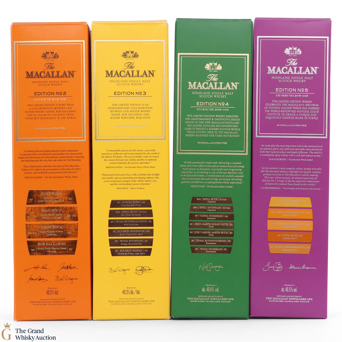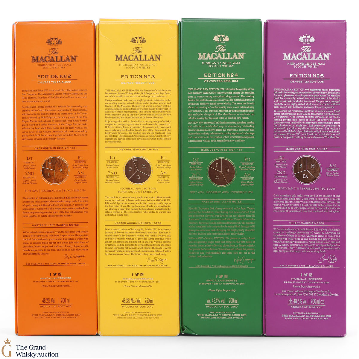 This lot brings together the Macallan Edition set to date (minus 1), comprising of Edition no.2, 3 ,4 and 5 in the annual limited edition series.
