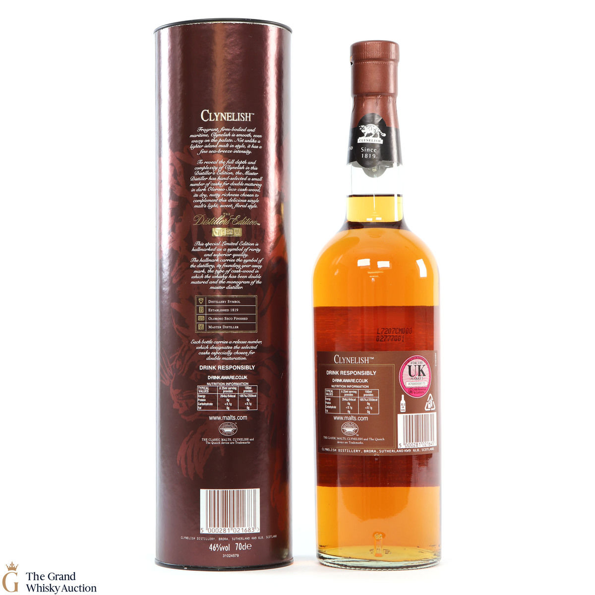 This 1992 vintage Clynelish single malt double matured in Oloroso Seco cask wood casks. Bottled in 2007 at 46% by Diageo for their Distillers Edition series. This is an early bottling in the series, a very collectable bottling.