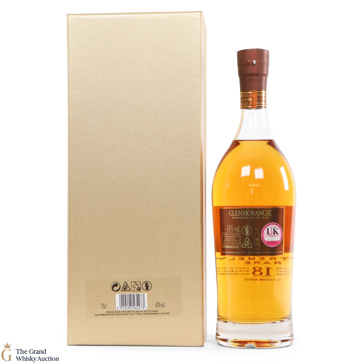 This bottle is an 18 year old Extremely Rare, Highland single malt produced by Glenmorangie. It has been perfected by the sixteen men of Tain who have specially aged this bottle for 18 years in superior oak casks and a period in Oloroso Sherry casks.