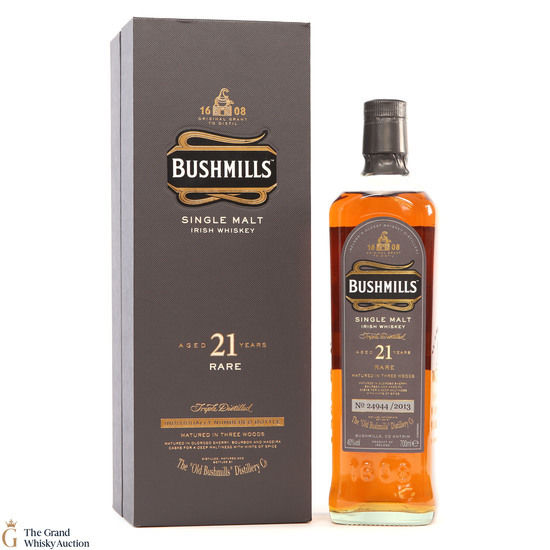 This 21 year old bottling by Bushmills has been triple distilled firstly in Oloroso sherry and Bourbon casks for at least 19 years and then followed by Maderia Casks for the final 2 years. The unique flavours of wood give this 21 year old whisky an enjoyable depth flavour.
