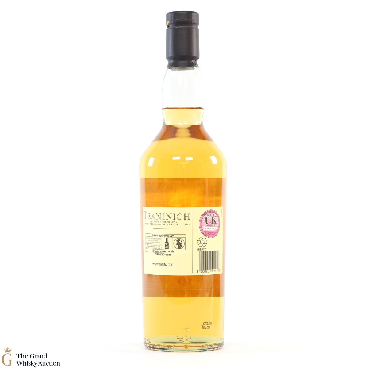 Due to the various ages of bottles and their seals, the condition of liquid is at the buyer's discretion and no claim can be lodged against failure/leakage in transit. Loss and breakage cover is available at 3% of the hammer price as standard. If the lot is not insured, no claim can be lodged against the courier or The Grand Whisky Auction for breakage or loss in transit.
