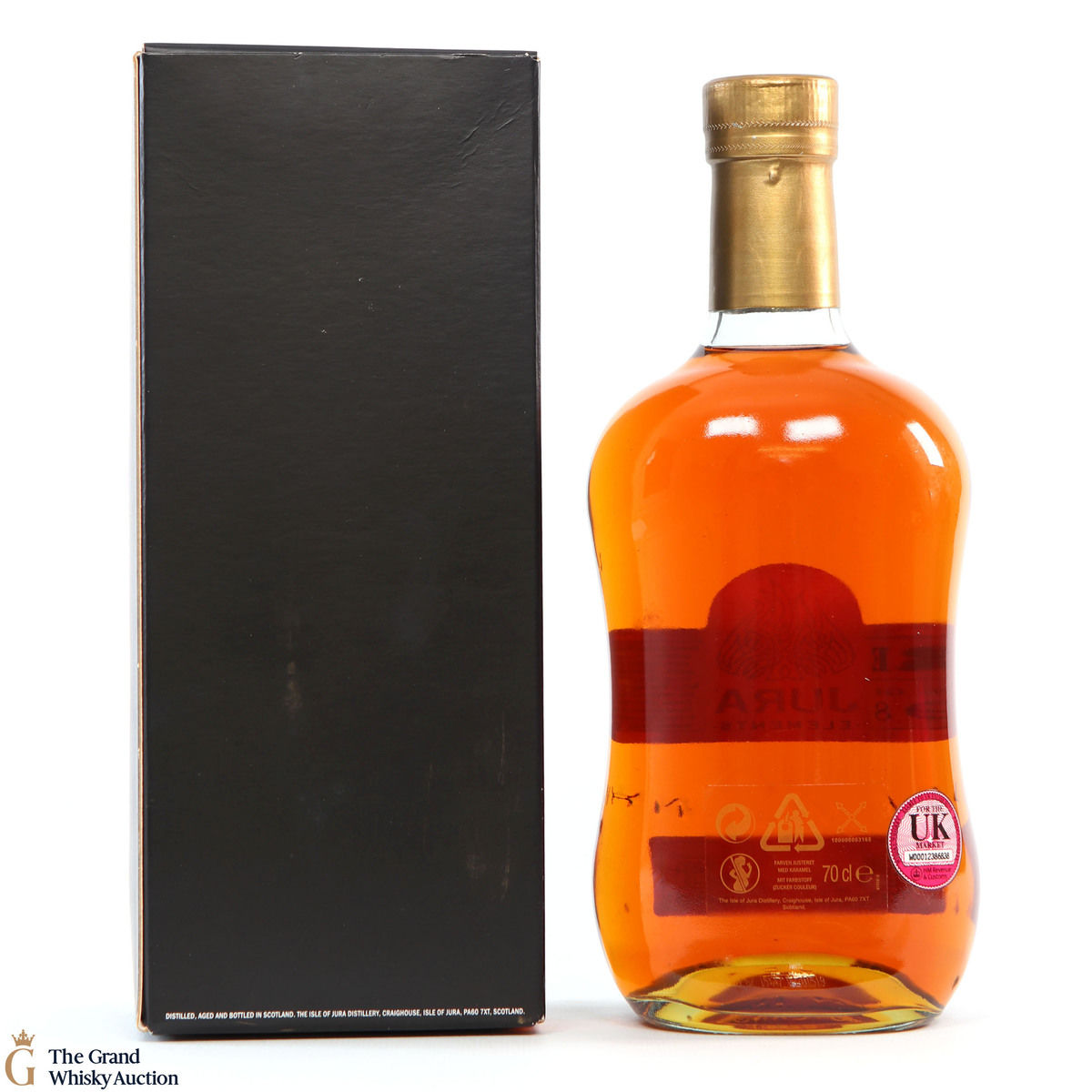This bottle by Jura is part of the 'Elements' series. 'Fire' came from fired bourbon casks, left for a decade the fiery fledging spirt won character. Distilled in October 1998 and bottled in 2008, there is only 684 bottles.