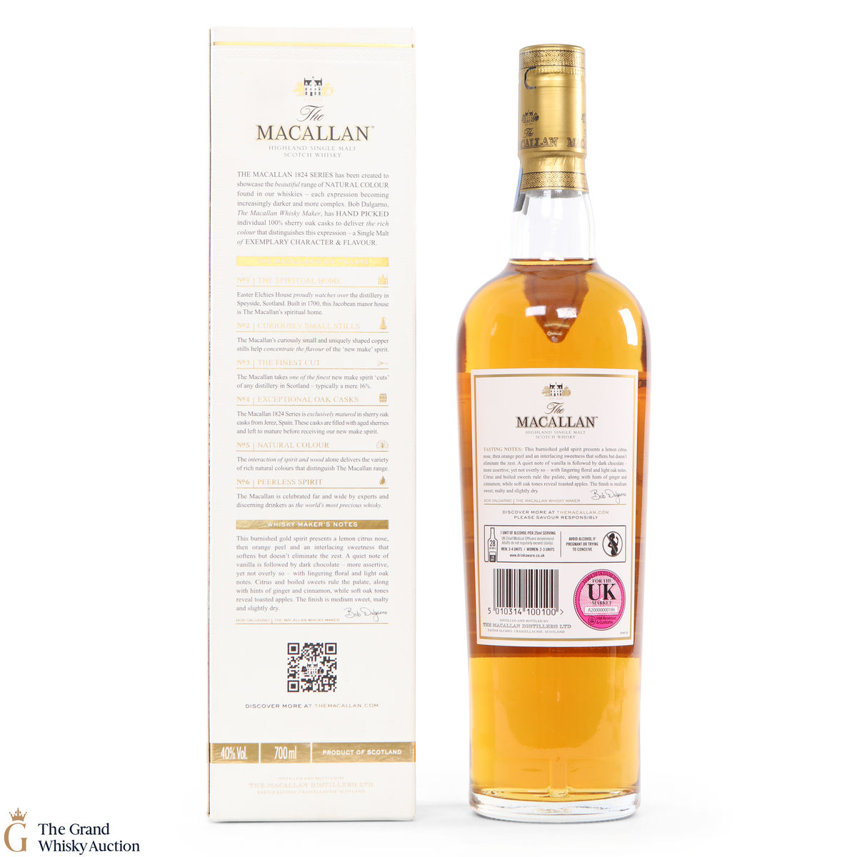 The Macallan 1824 Series celebrates natural colour. The most distinctive and defining characteristic of Macallan is the sherry-seasoned oak casks that are used to mature the whisky. This series shows commitment to 100% natural colour, drawn from wood. The colour of each expression becomes deeper as the range progresses.