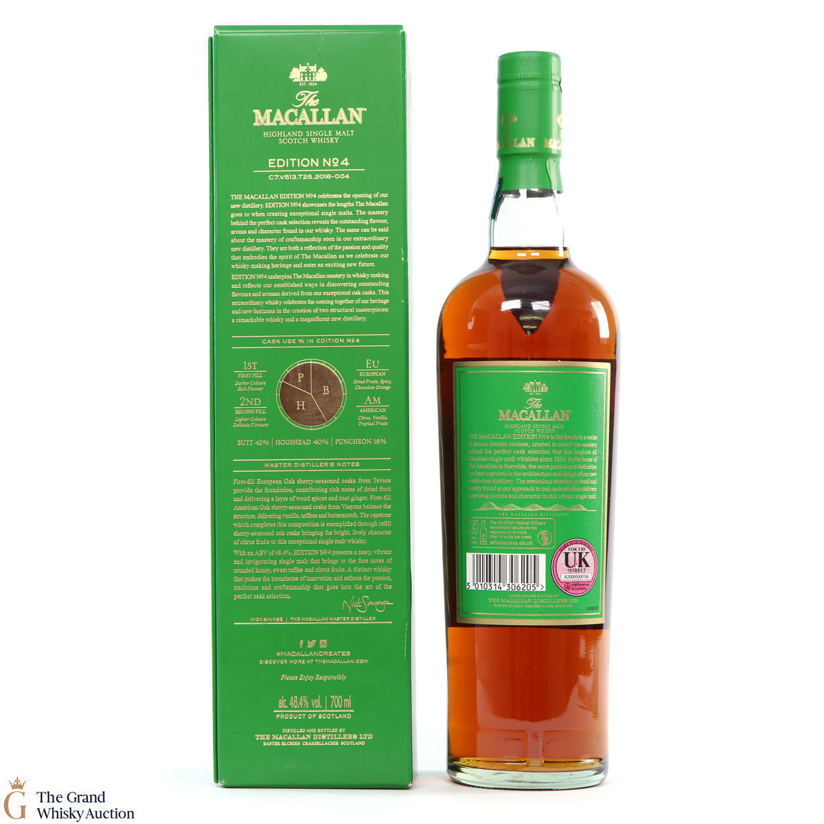 The fourth release in the Edition Series from The Macallan, this Speyside single malt is a celebration of the distillery's whisky making heritage, combining a unique selection of oak cask styles. Edition No.4 reflects the craftsmanship and pioneering design of the new Macallan distillery.