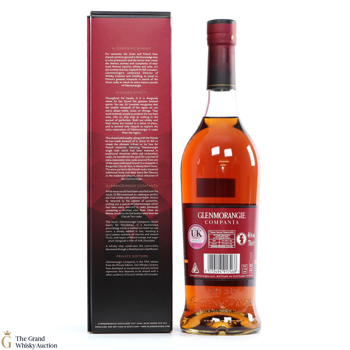 After first maturing in American white oak ex-bourbon barrels, the Companta was matured in 60% Burgundy wine casks from Clos de Tart and 40% Rhône Valley casks that previously held Rasteau, sourced by Glenmorangie's Director of Distilling, Dr. Bill Lumsden.