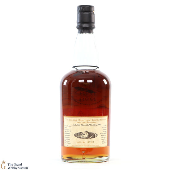 This lot is a 18 year old bottling is to celebrate 200 years of malt whisky distilling at Blair Athol Distillery. This special cask strength limited edition bottling has been produced as a tribute to the staff, past and present.