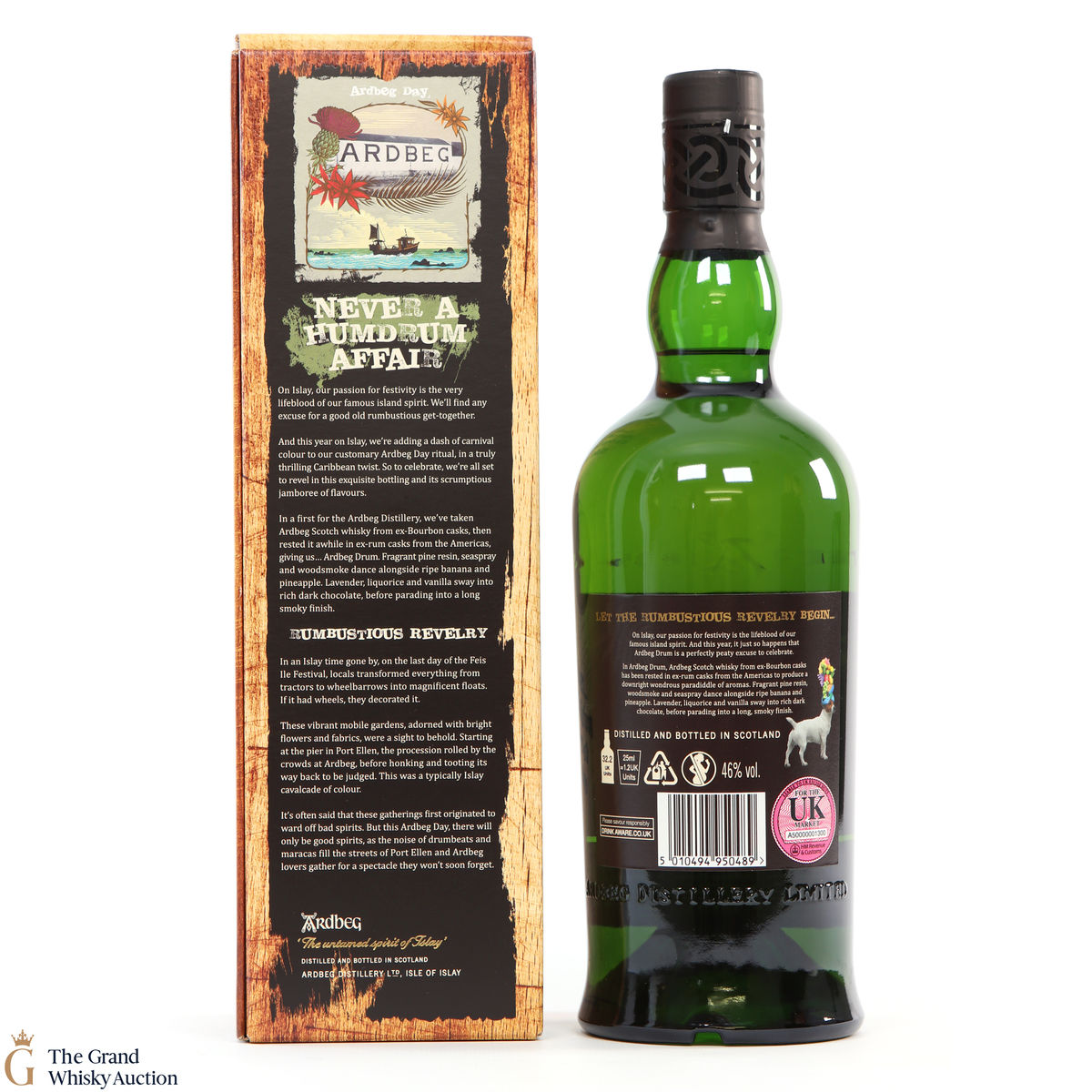 This is the 2019 Ardbeg Drum Limited edition. The Ardbeg Drum is a non-age-statement single malt matured in ex-Bourbon casks and then finished in ex-rum casks from the Americas. It was created to celebrate Ardbeg Day 2019 (June 1) held during the Islay Festival of Music & Malt (Fèis Ìle).