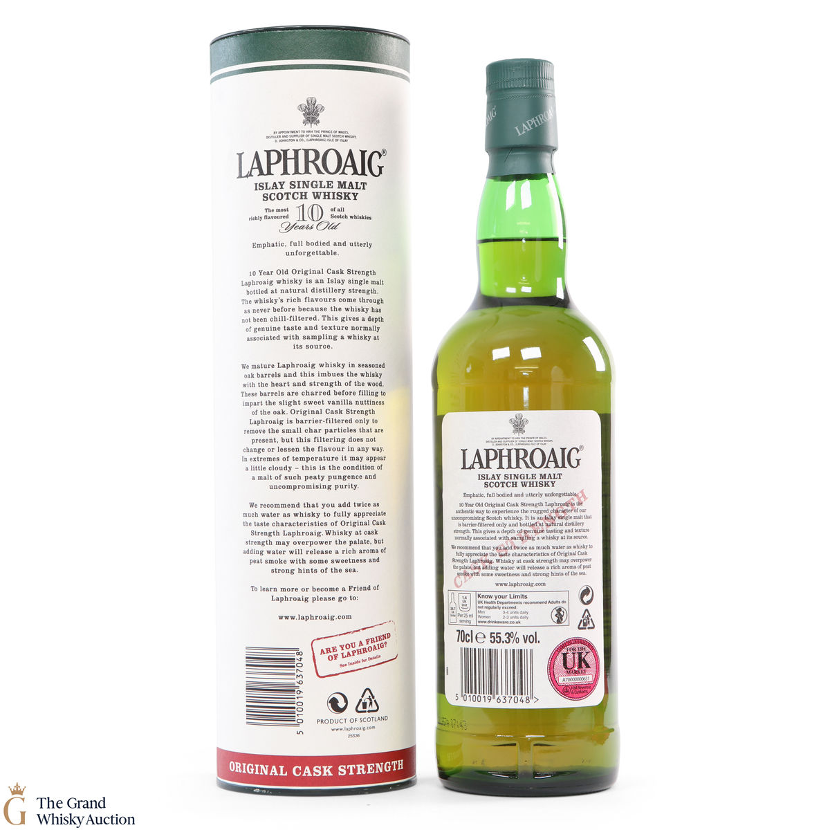 This bottling is from batch 003, original cask strength bottling of the medicinal 10-year-old from Islay's bestselling distillery, Laphroaig. In making Laphroaig, malted barley is dried over a peat fire. The smoke from this peat, found only on Islay, gives Laphroaig its particularly rich flavour. This release was bottled at 55.3% in January 2011.