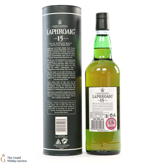 A smart old bottle of Laphroaig, bottled in the mid to late 1990s, after the award of the Royal Warrant in 1994. Laphroaig 15 Year Old is smoother than the robust 10-year-old.