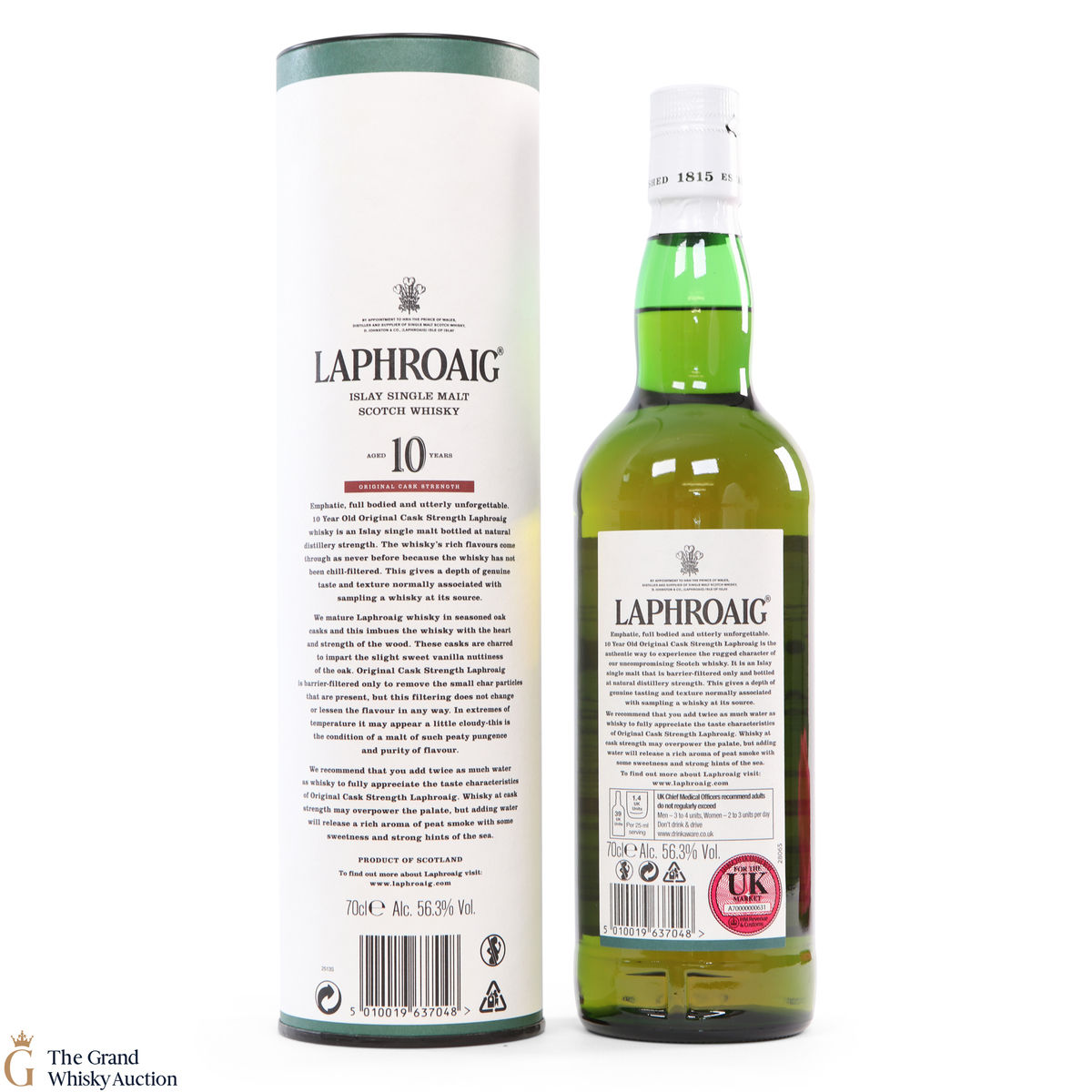 This bottling is from batch 007, original cask strength bottling of the medicinal 10 year old from Islay's bestselling distillery, Laphroaig. In making Laphroaig, malted barley is dried over a peat fire. The smoke from this peat, found only on Islay, gives Laphroaig its particularly rich flavour. This release was bottled at 56.3% in January 2015. It was the year Laphroaig celebrated 200 years of Laphroaig.