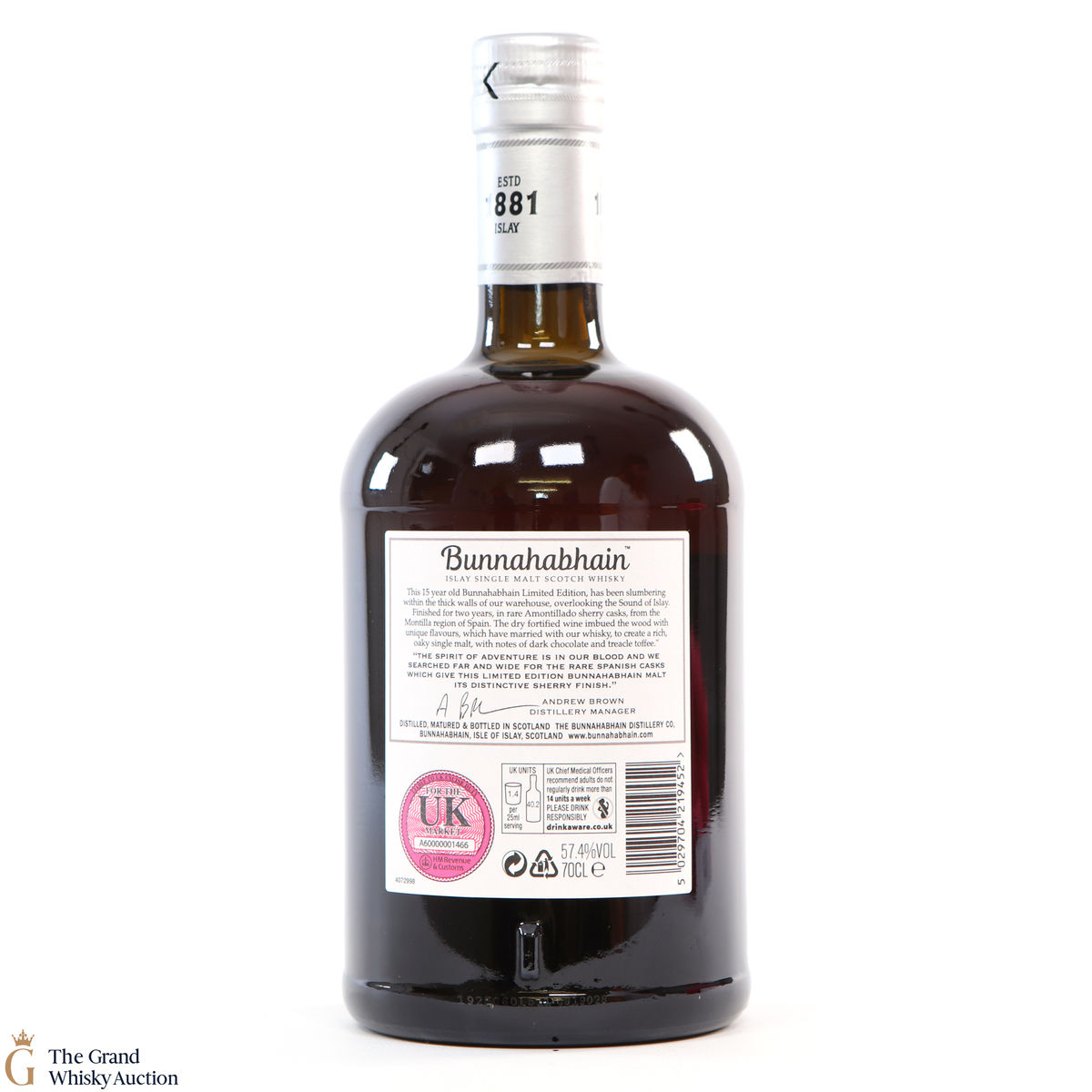 This is a 2019 distillery exclusive from Bunnahabhain Distillery. This Amontillado Cask Finish limited edition started life on the 20th of February 2003 in refill hogsheads before being transferred to Amontillado sherry hogsheads on the 26th of February 2016 where it spent two more years maturing in Bunnahabhain's coastal warehouses.