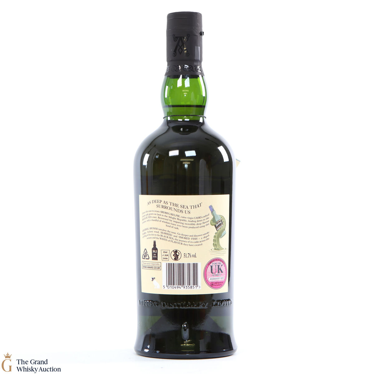This is Committee exclusive release of Ardbeg Kelpie, a single malt released in 2017. It was matured in casks made from virgin Black Sea oak and more traditional bourbon casks. The Committee Release is bottled at the higher strength of 51.7% ABV (while the standard Ardbeg Kelpie has bottled at 46% ABV).