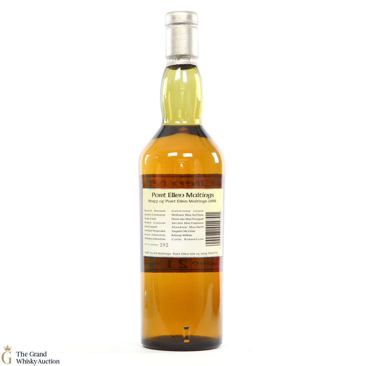 A rare and a stunning Port Ellen, bottled 1998 to commemorate the 25th Anniversary of Port Ellen Maltings. Rear label printed with the names of the distillery staff, 1998.