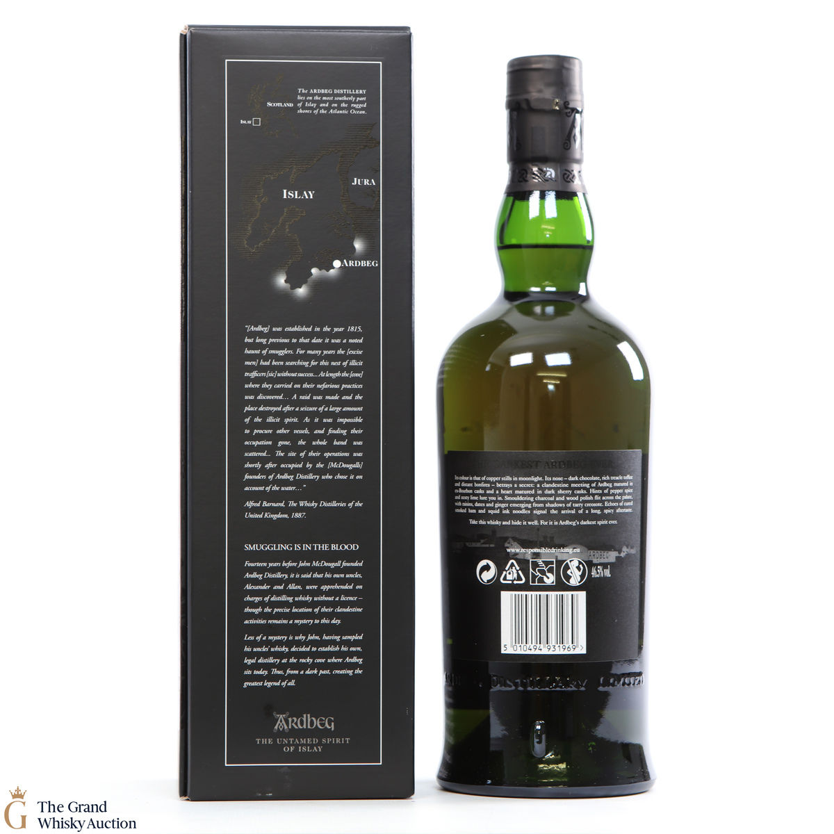 The Ardbeg Dark Cove was matured in ex-bourbon and dark Sherry casks to create ‘The Darkest Ardbeg Ever.’ This release, although bottled at a lower ABV than the Committee Release, has garnered great reviews, including one from Dramming.com's Oliver Klimek. It has notes of dark fruits, intense peat, ginger and bacon, with a long smoky finish. It is said to be created to honour the Islay coastline's shadowy past – although the colour isn’t too dark at all, the dark casks used provide plenty of oaky depth.