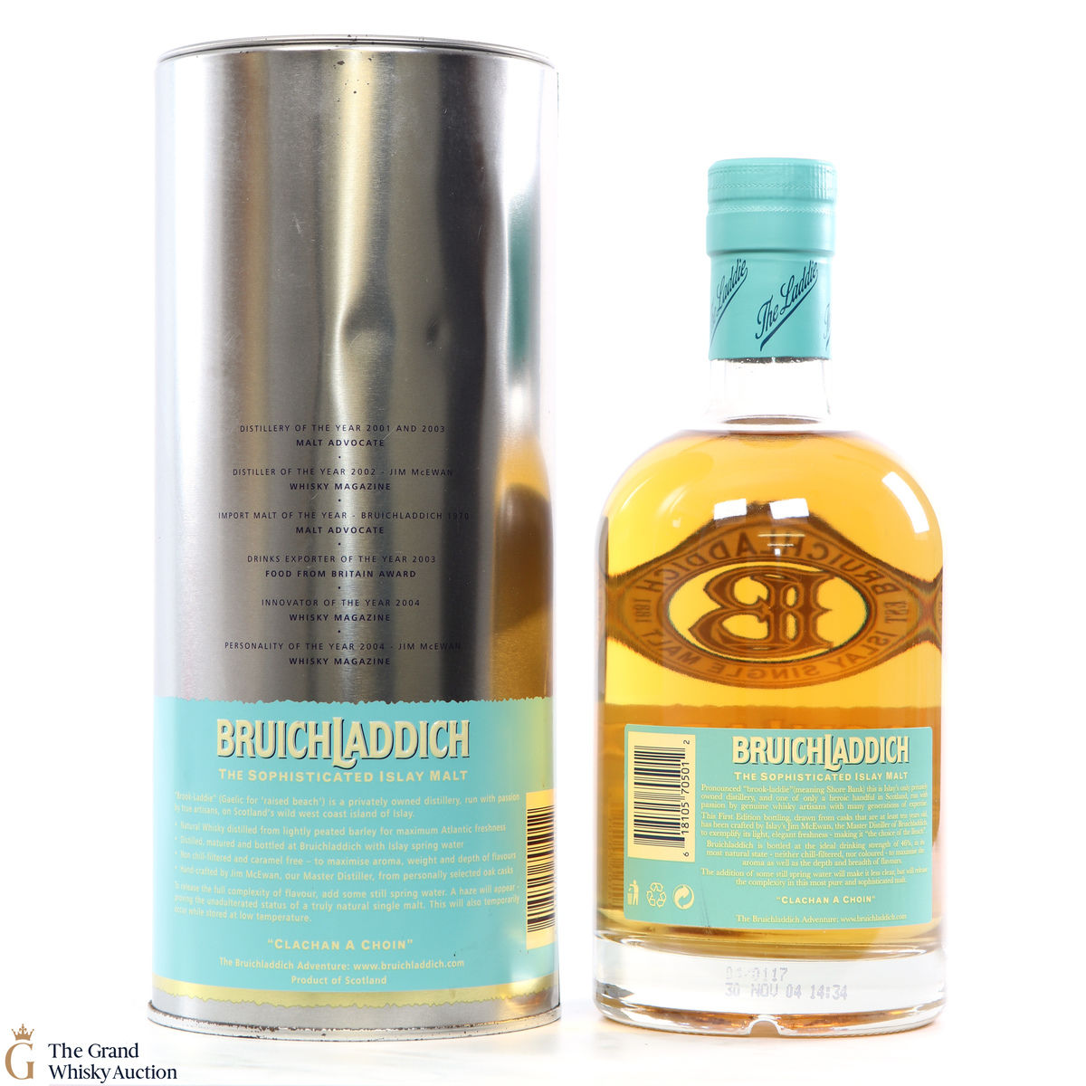 This 10-year-old Islay single malt from Bruichladdich comes complete with presentation tin tube. This edition is the old style and now discontinued packaging that has been replaced by the 'Laddie Ten'.
