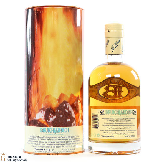 Moine Mhor is Gaelic for 'big peat' - This is a vatting of 3 different peat levels from 3 diverse cellars over 3 distinct eras, thus the name '3D': Heavily peated 2001 Port Charlotte, moderately peated 1998 whisky and 1989 lightly peated Bruichladdich. This bottling is the second edition of 3D "The Peat Proposal" but with more peat and higher strength.