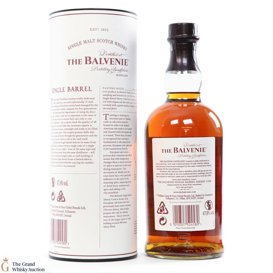 This bottle is one of no more than 800 bottles drawn from the single cask number 11168. Matured in a European Oak Sherry Butt for at least 15 years before being selected by David Stewart, the Balvenie Malt Master.