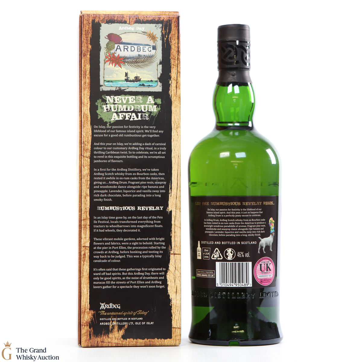 This is the 2019 Ardbeg Drum Limited edition. The Ardbeg Drum is a non-age-statement single malt matured in ex-Bourbon casks and then finished in ex-rum casks from the Americas. It was created to celebrate Ardbeg Day 2019 (June 1) held during the Islay Festival of Music & Malt (Fèis Ìle).