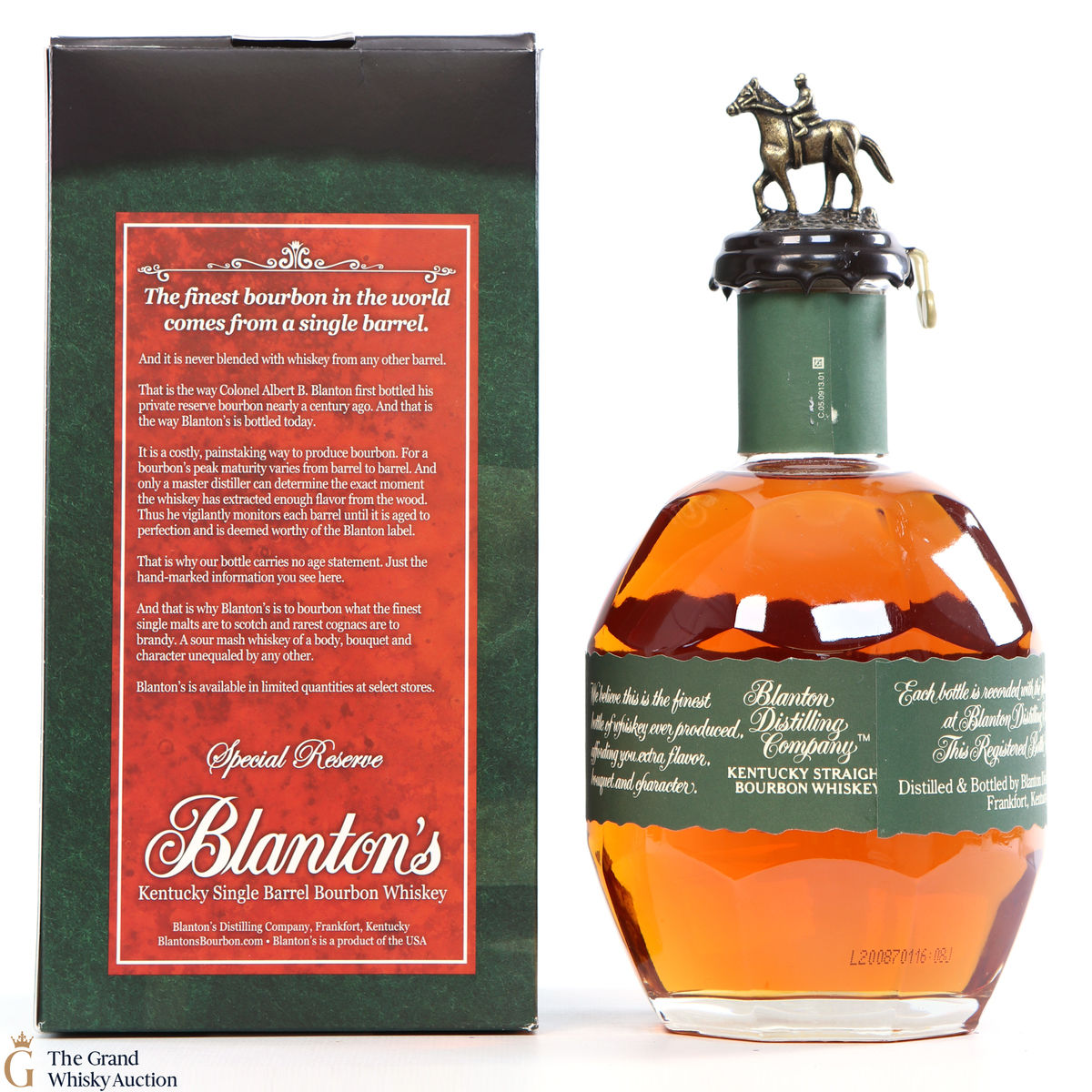 Blanton's Single Barrel Special Reserve is a lower strength single barrel bourbon. Dumped Date. Each bottle is hand-filled, hand-labelled, hand-sealed and individually numbered. 80 Proof.