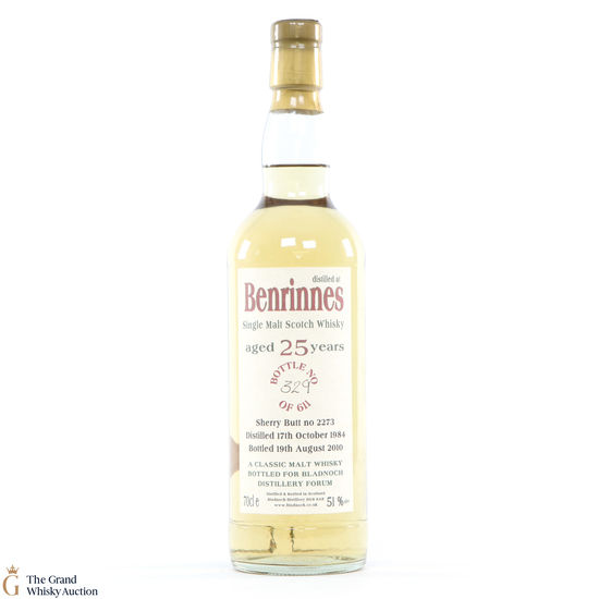 This 1984 vintage single cask Benrinnes was bottled specially for Bladnoch Distillery Forum from sherry butt #2273. This is one of 611 bottles filled on the 19th August 2010 at the cask strength of 51%.