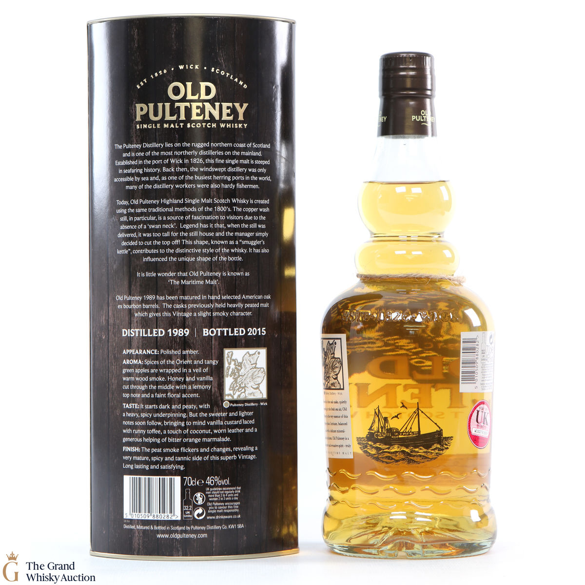 This Old Pulteney 1989 vintage was awarded World's Best Single Malt Whisky at the 2016 World Whiskies Awards. To give the 1989 vintage a peaty, smoky character, the whisky was matured in American oak ex-bourbon barrels, which previously held heavily peated malt.