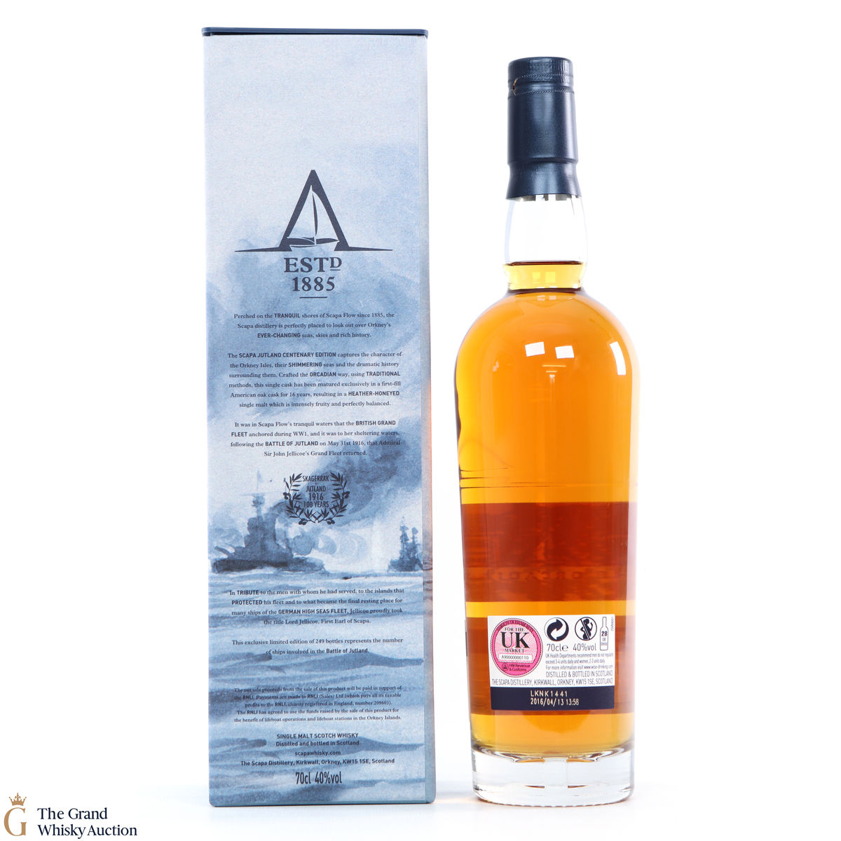 A special single cask bottling of Scapa, released in 2016 to commemorate the Battle of Jutland, which occurred in 1916, bottled in a tribute the 249 ships that were involved in the Battle of Jutland. This is one of 249 bottles produced.