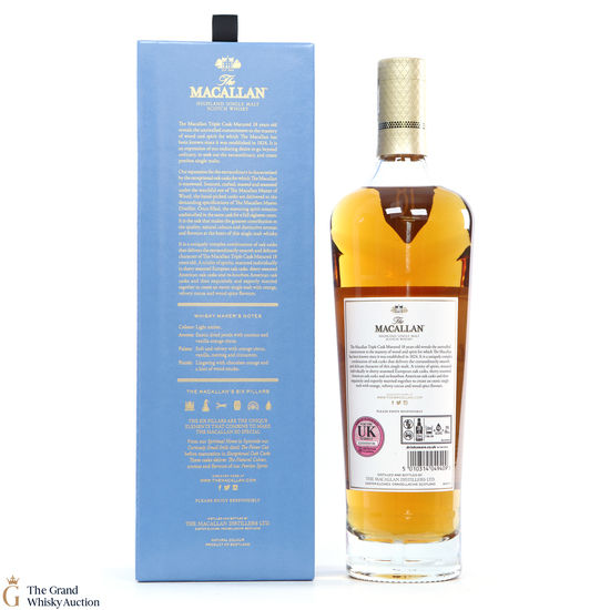 This 18 year old Macallan single malt was released in 2018 and sits is at the top of the Triple Cask range (which replaced the Fine Oak range). The whisky was matured in a combination of European sherry seasoned casks, American sherry seasoned casks and American ex-bourbon casks. This expression boasts bountiful notes of vanilla, dried fruit and woody spice.