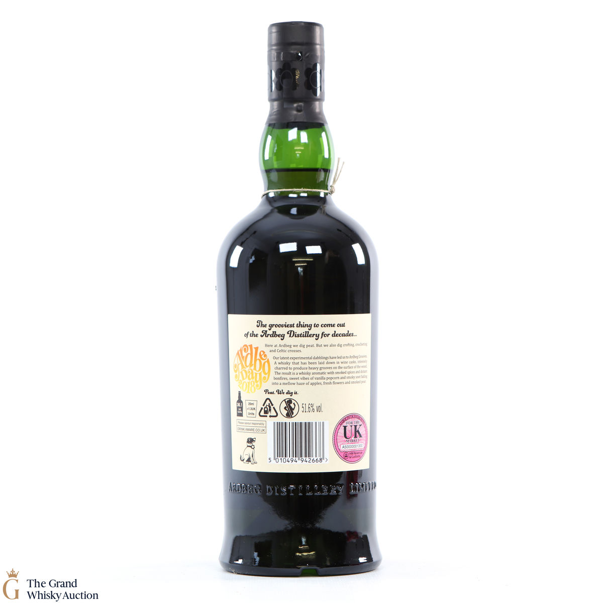 This limited edition Islay single malt was released to mark the 2018 Ardbeg Day at the Islay Festival of Music & Malt. The theme is a throwback to the Island's 1960s spirit, embodying the ideals of 'peat & love'! Ardbeg Grooves is crafted with ex-wine casks that are re-charred to create heavy grooves in the wood, allowing more interaction with the spirit and creating a richer flavour.