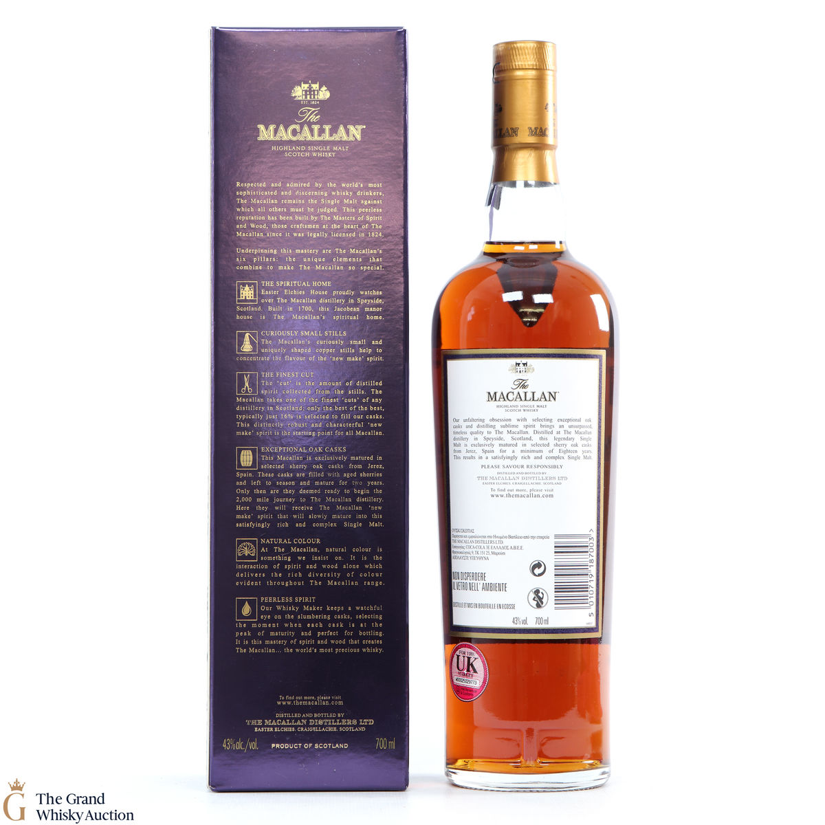 Due to the various ages of bottles and their seals, the condition of liquid is at the buyer's discretion and no claim can be lodged against failure/leakage in transit. Loss and breakage cover is available at 3% of the hammer price as standard. If the lot is not insured, no claim can be lodged against the courier or The Grand Whisky Auction for breakage or loss in transit.