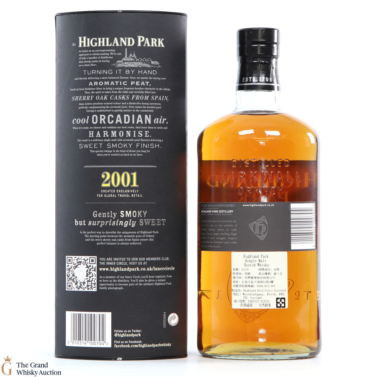 A 2001 vintage Highland Park originally released for the travel retail market, which was distilled in 2001 and bottled in 2012. Made with a high proportion of first-fill American oak casks.
