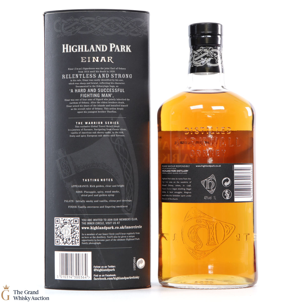 Einar is from Highland Park's travel retail Warrior series. It is named after Einar Sigurdsson who is documented in the Orkneyinga Saga as 'hard and successful man' that once ruled Orkney, where the Highland Park distillery resides. This single malt has been matured in Sherry seasoned American and European oak casks. Warm flavours of zesty dried orange peel and vanilla pods sweetly unfold in each dram of Einar.