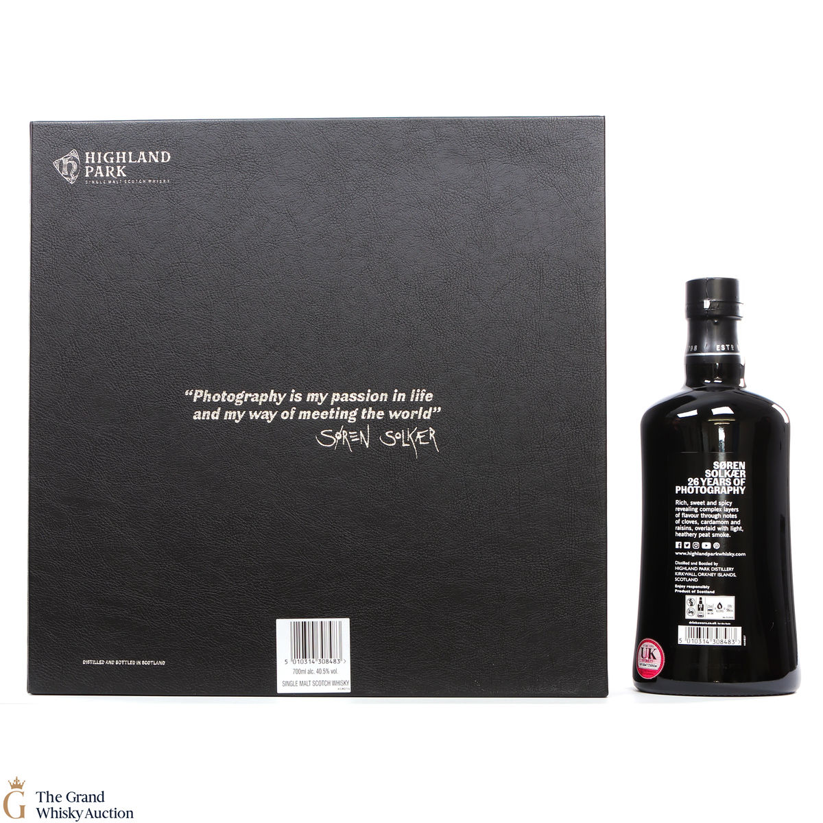 This single malt comes presented in a limited-edition black leather look case, with a book containing 250 photographs by Soren Solker & Highland Park.