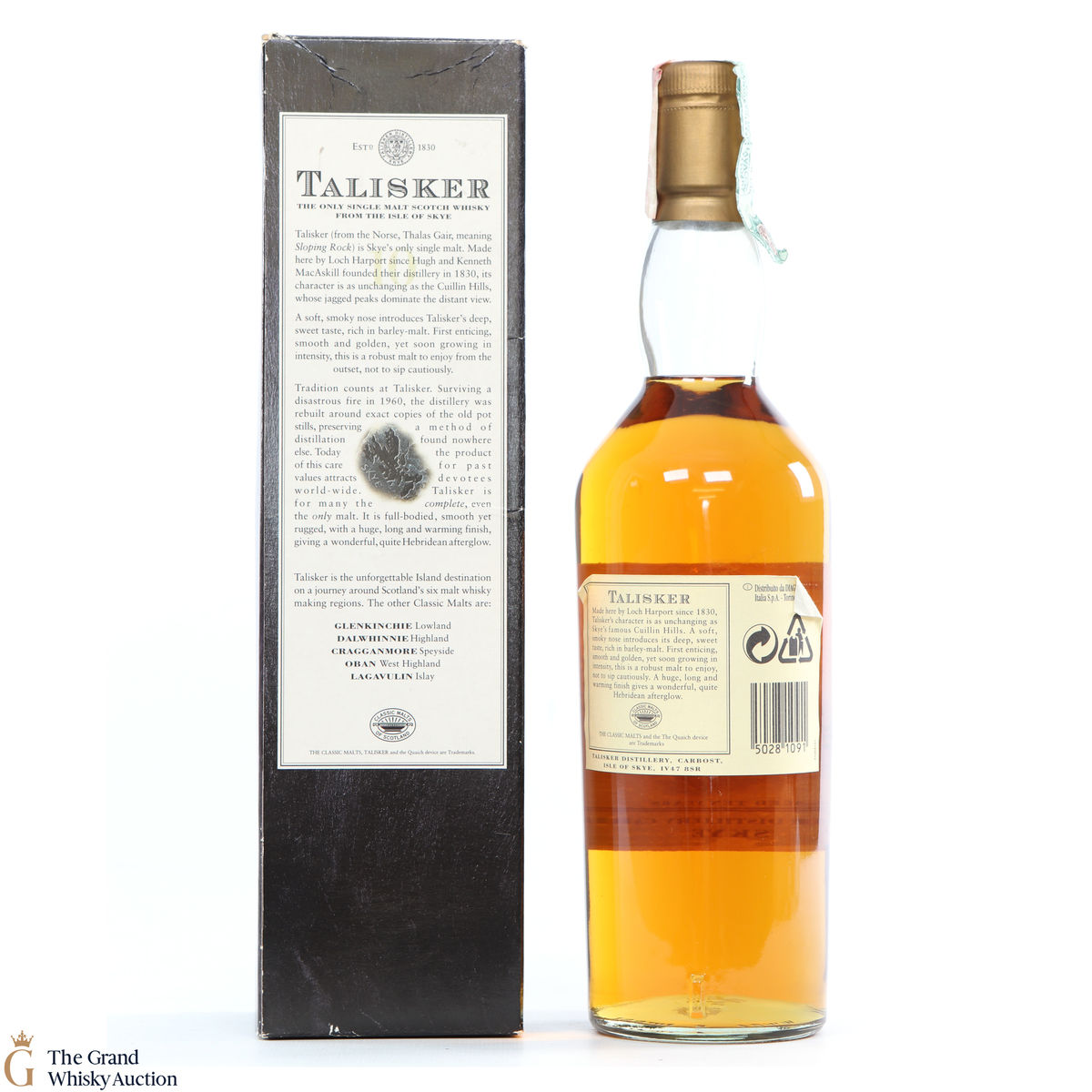 From the Isle of Skye Talisker 10 Year Old from the 1990s.This older style of the packaging features the Isle of Skye mapped on a stone.