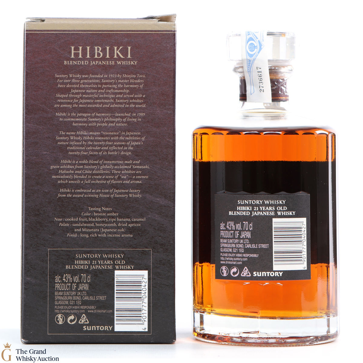 Hibiki 21 Year Old is a very popular blended whisky from Suntory. It is made up of a blend of specially selected mature malt and grain whiskies aged over 21 years. The key Yamazaki sherry casked malt is vatted with other carefully chosen mellow unblended grain whiskies over 21 years old.