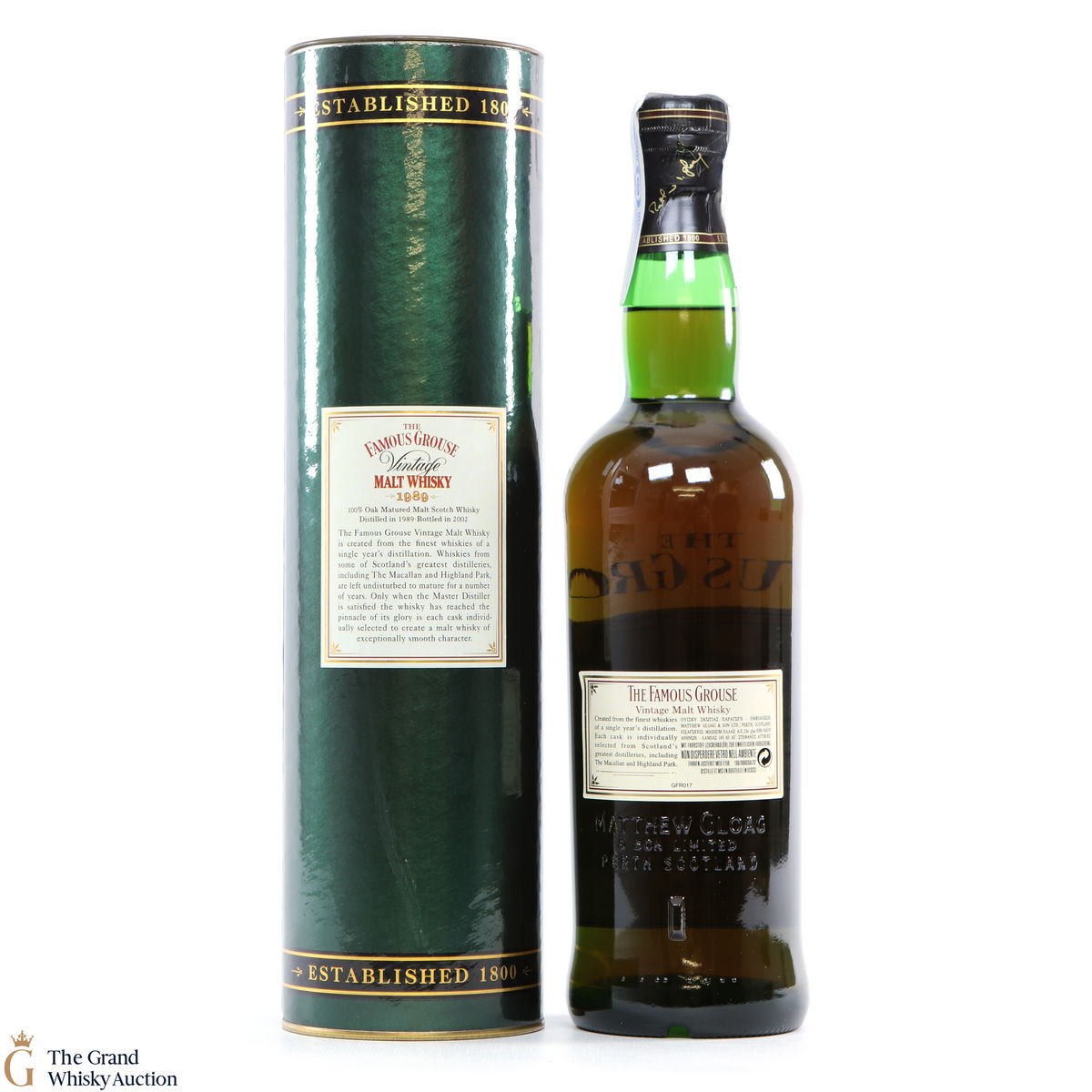 This is a 70cl bottling of Famous Grouse - 1989 Vintage, which is the first release in the series. This vatted malt from Famous Grouse includes Highland Park and Macallan.