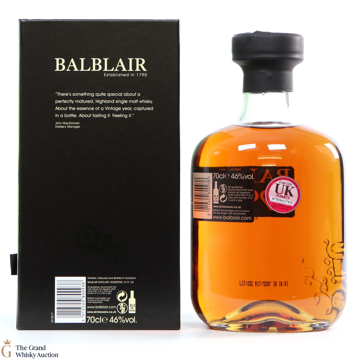Due to the various ages of bottles and their seals, the condition of liquid is at the buyer's discretion and no claim can be lodged against failure/leakage in transit. Loss and breakage cover is available at 3% of the hammer price as standard. If the lot is not insured, no claim can be lodged against the courier or The Grand Whisky Auction for breakage or loss in transit.
