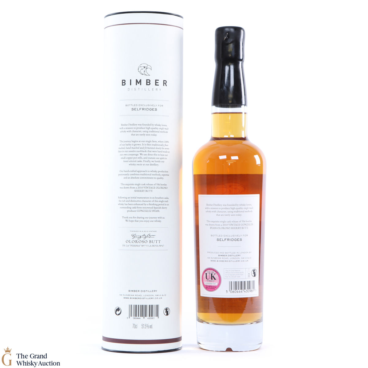 An exclusive partnership between the London distillery and department store Selfridges. This Bimber was made from single farm barley (which was malted at Westminster Maltings) and matured in four 1st fill American Oak Ex-bourbon casks. It was then finished in a single Oloroso sherry butt from hugely renowned Spanish sherry producer González Byass. Bottled in June 2020 at 51.5% ABV.