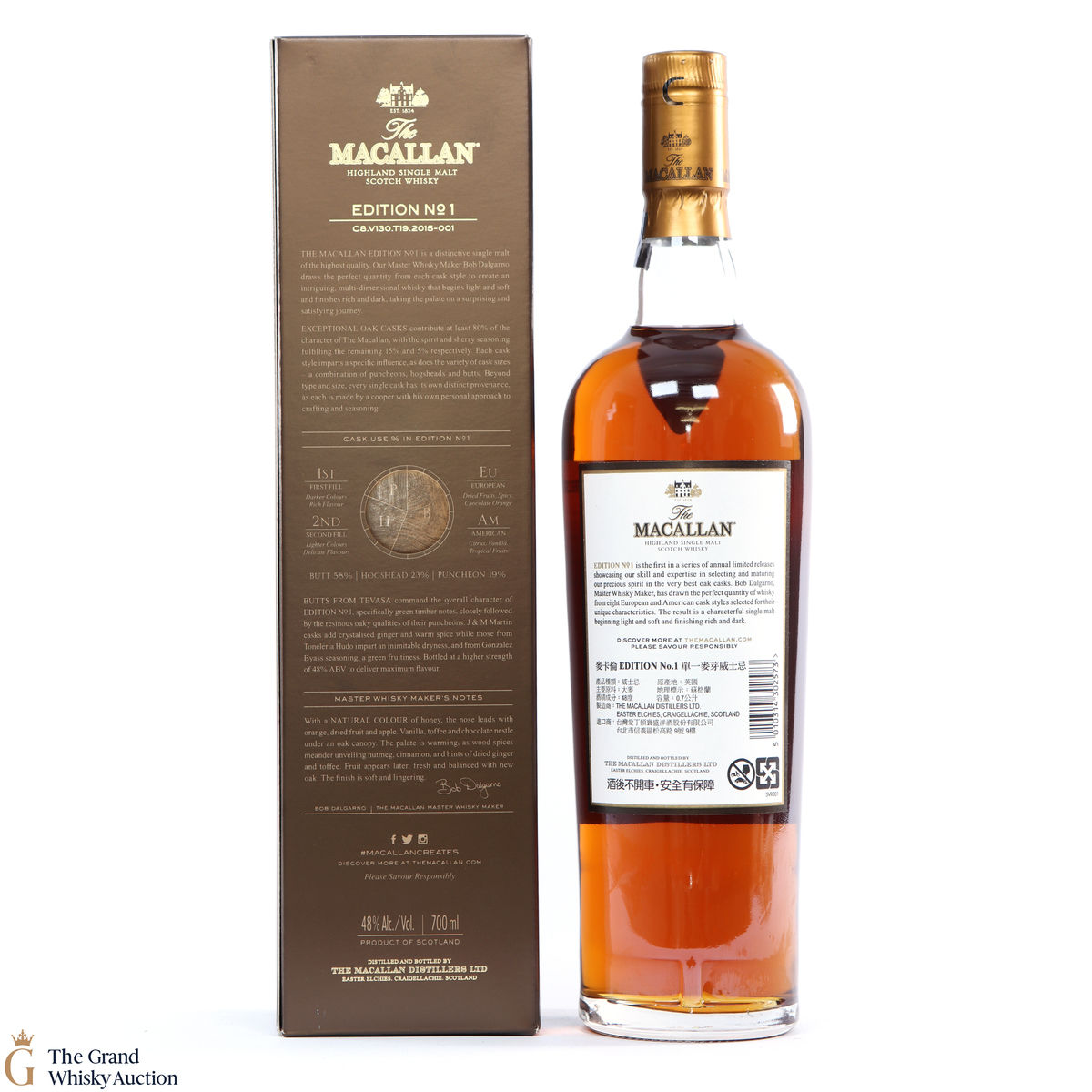 The Macallan Edition No. 1 is the debut expression in the Edition Series. This is a limited edition drawn from eight European and American oak cask styles selected for their unique characteristics.