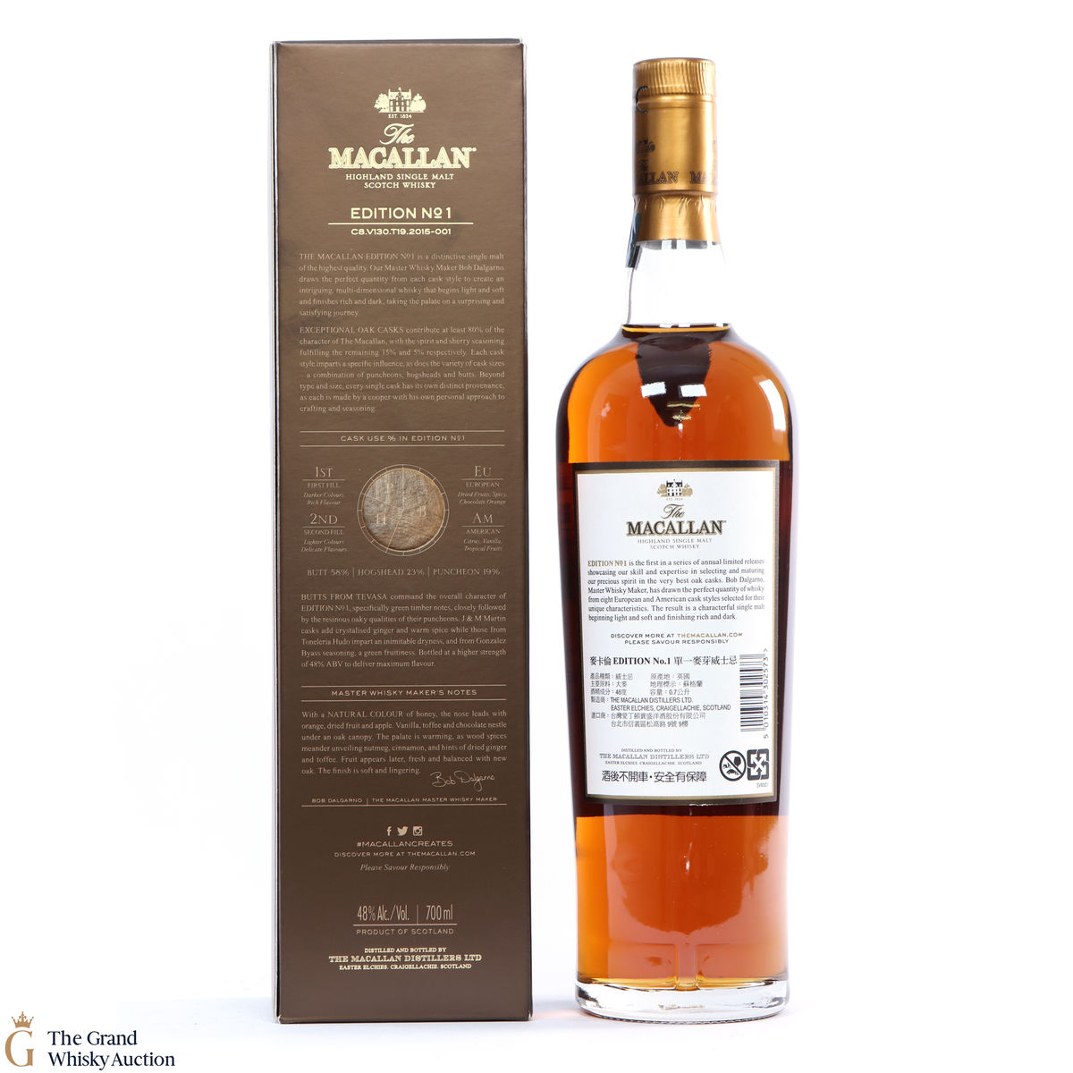 The Macallan Edition No. 1 is the debut expression in the Edition Series. This is a limited edition drawn from eight European and American oak cask styles selected for their unique characteristics.