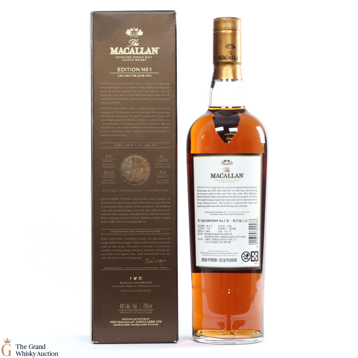 The Macallan Edition No. 1 is the debut expression in the Edition Series. This is a limited edition drawn from eight European and American oak cask styles selected for their unique characteristics.